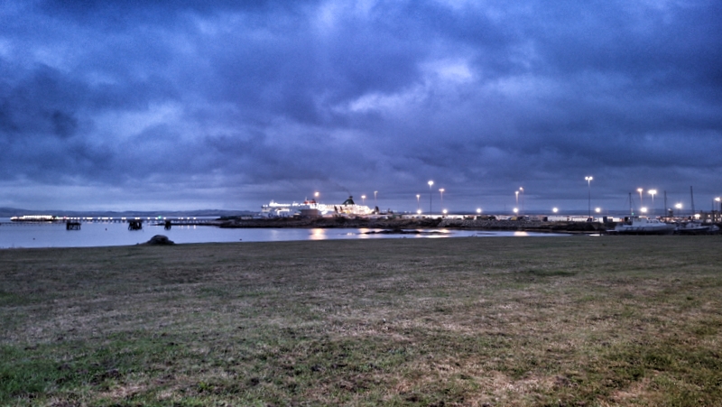 Stena and Irish Ferries readying for their night crossings (view from our park-up)